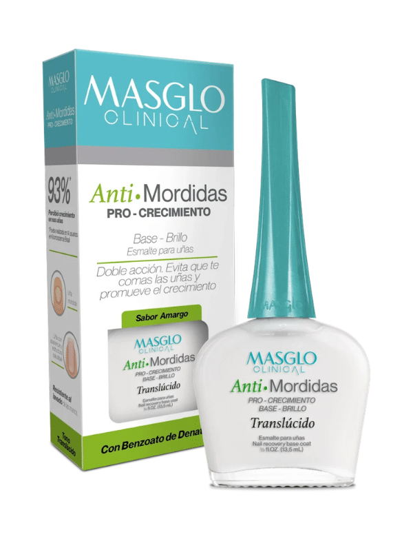 - Con Benzoato de Denatonio, el activo mas amargo del mundo, que al contacto con la boca genera sensación desagradable que ayuda a prevenir morder las uñas.